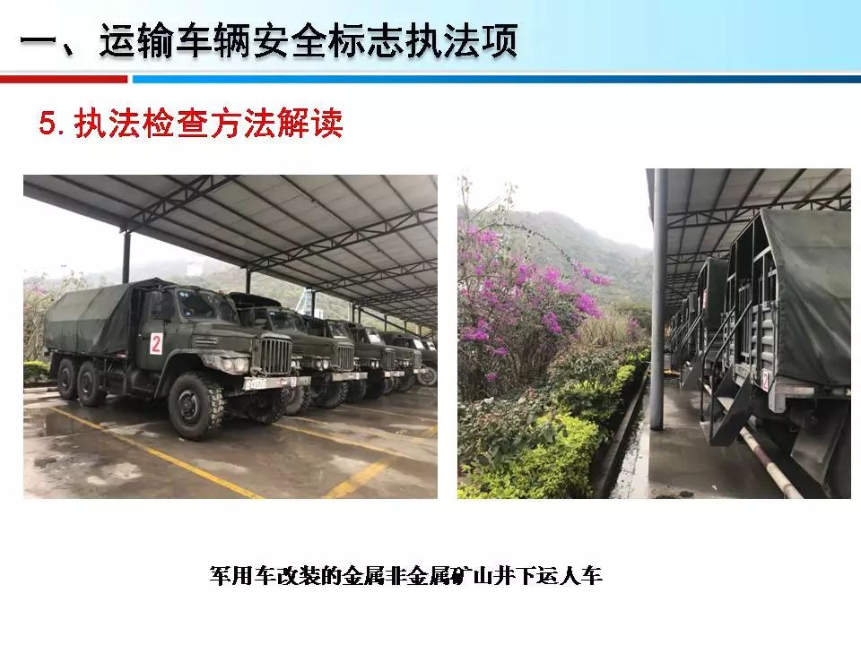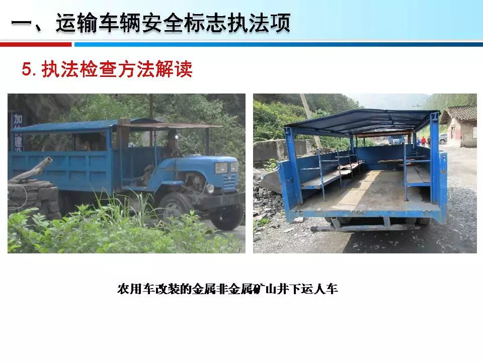 1.矿山井下运输车辆未取得清静标记。