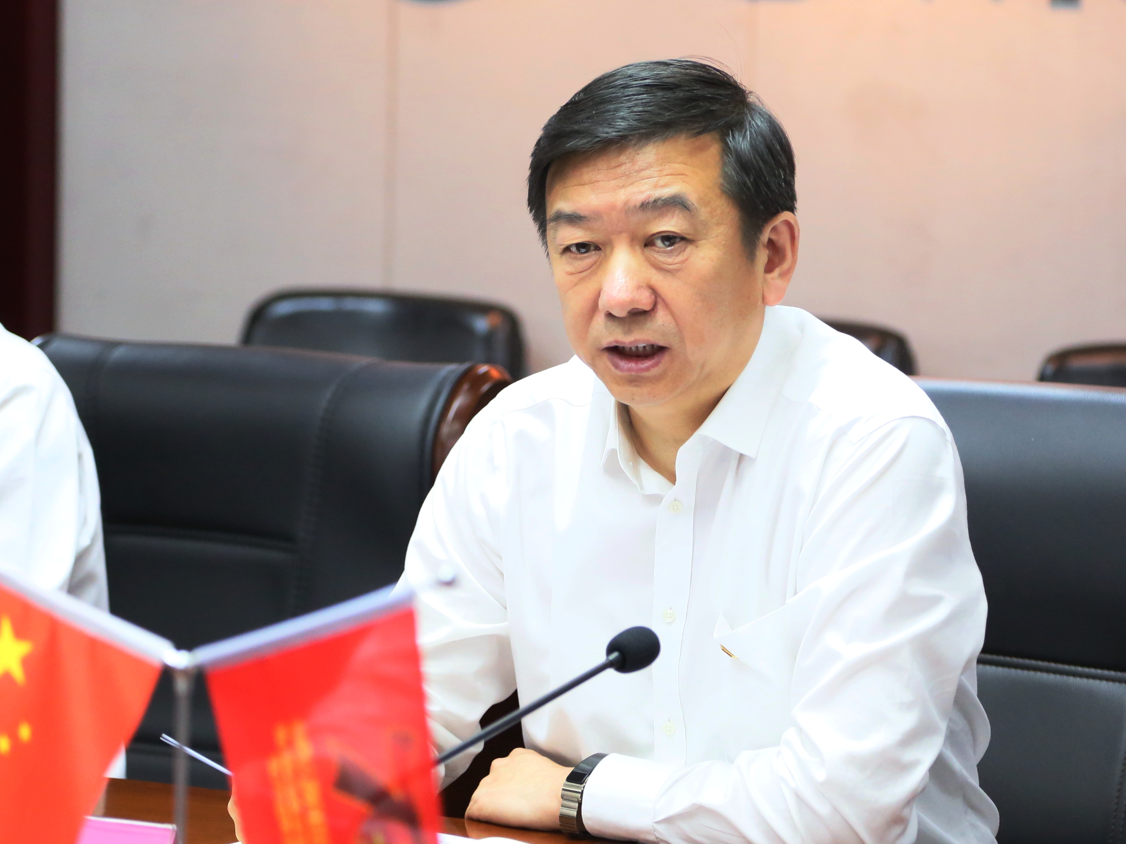 省政府副秘书长李德喜主持调研座谈会。省国资委党委副书记侯纯禄、省国资副主任李忠江陪同调研。
