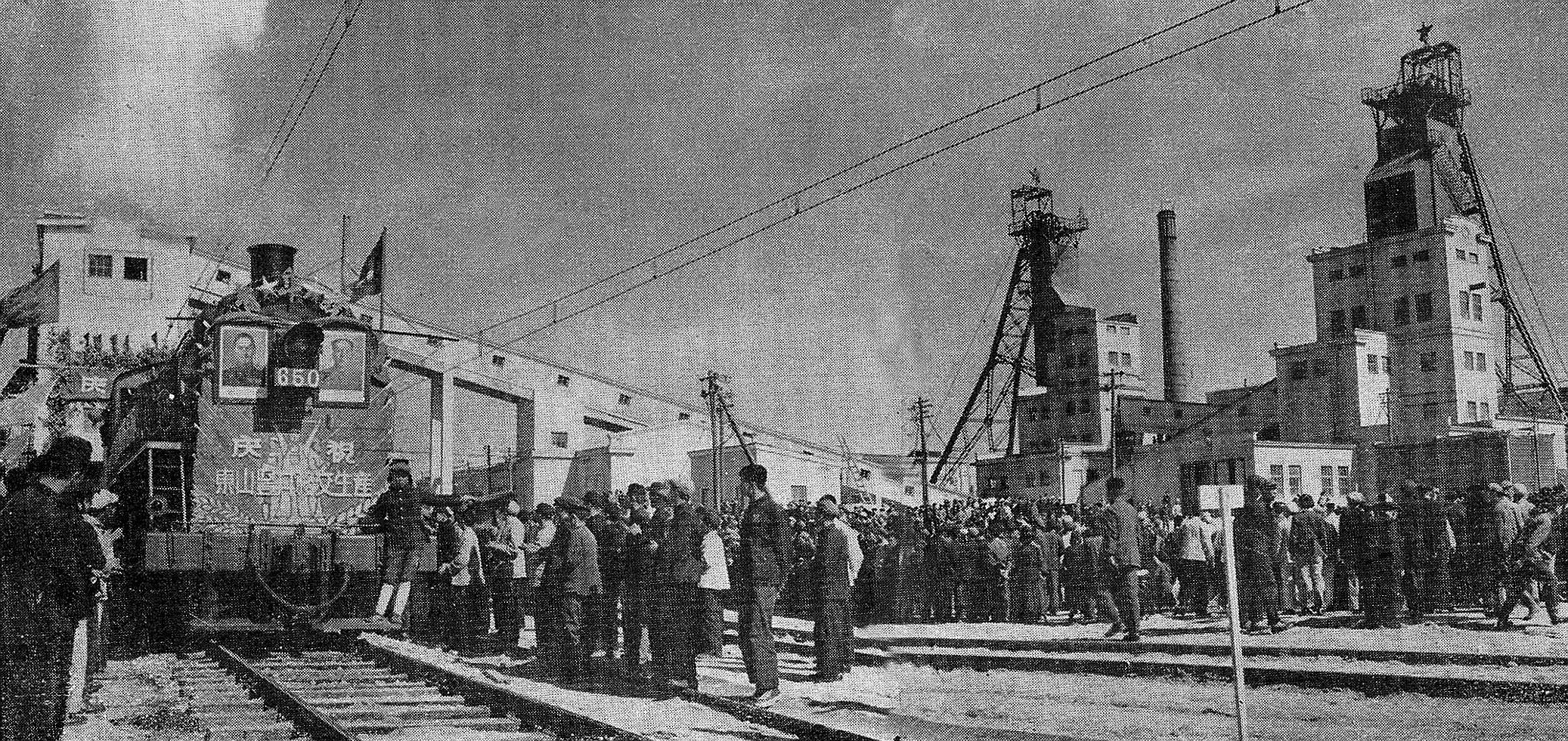 1950Äê9ÔÂ20ÈÕ£¬ÓÉǰËÕÁªÃºÌ¿¹¤Òµ²¿¿ó¾®Éè¼Æ×ܾÖÖ÷³Ö£¬ÁÐÄþ¸ñÀÕÉè¼ÆÔºÉè¼ÆµÄº×¸Ú¶«É½Êú¾®ÕýÊ½ÆÆÍÁ¶¯¹¤£¬Àúʱ5Ä꣬¿ó¾®Õýʽ½¨³É²¢Òƽ»Í¶²ú¡£ÓÉÓÚ¶«É½Êú¾®ÊÇÐÂÖйú½¨ÉèÒԺ󽨳ɵĵÚÒ»¸öÊú¾®£¬Òò´Ë±»¹ú¼Òú̿²¿ÃüÃûΪ¡°ÐÂһú¿ó¡±¡£Í¼ÎªÍ¶²úºó·¢³öµÚÒ»³µÃº¡£