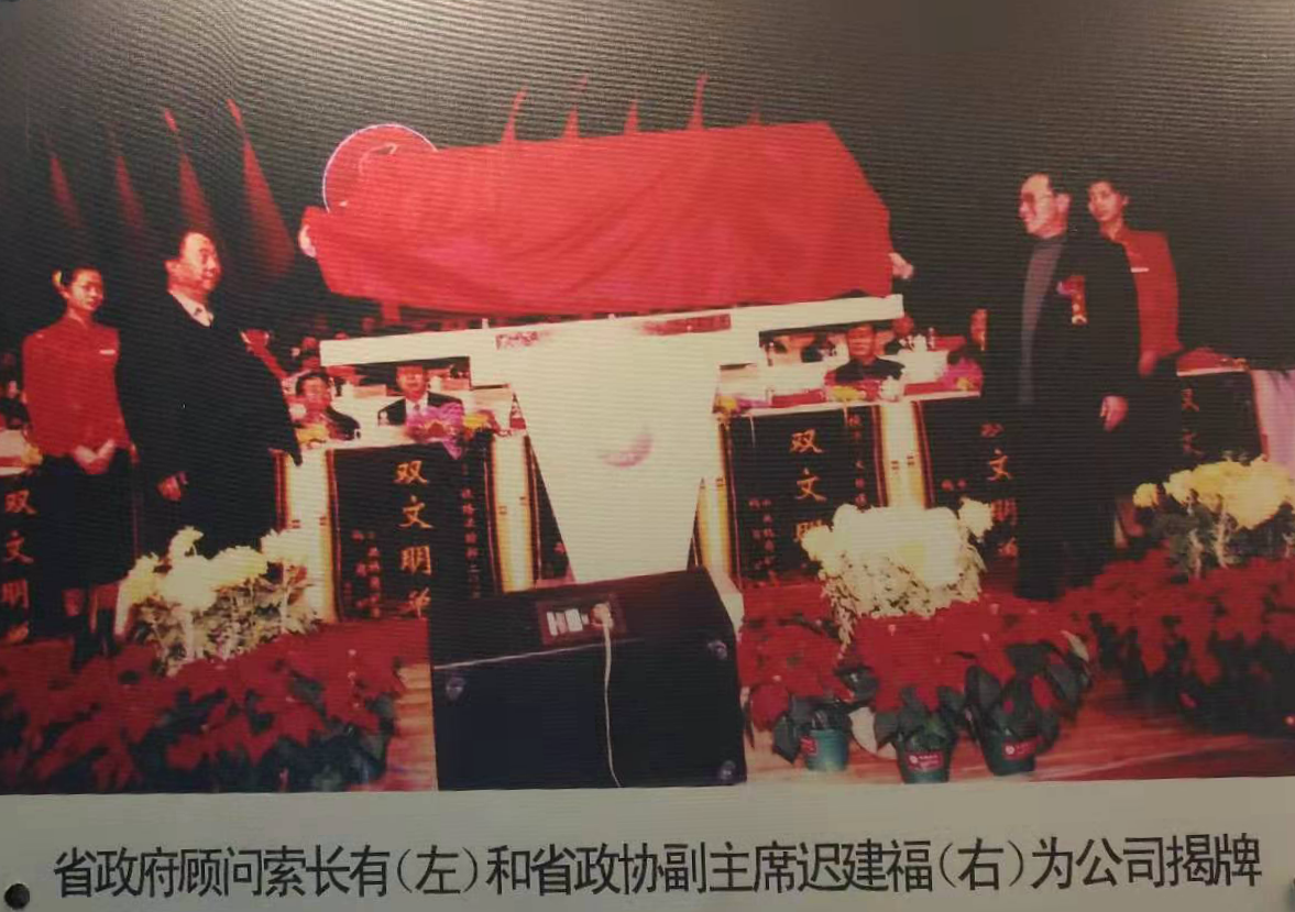 2002Äê12ÔÂ18ÈÕ£¬º×¸Ú¿óÒµ¼¯ÍÅÓÐÏÞÔðÈι«Ë¾£¬º×¸Úú¿ó¼¯ÍÅÓÐÏÞ¹«Ë¾½¨ÉèÇìµäôßË«ÎÄÃ÷½¨Éè±íÑï´ó»á¡£Í¼ÎªÊ±ÈκÚÁú½­Ê¡Õþ¸®ÕÕÁÏË÷³¤ÓУ¨×󣩺ÍÊ¡ÕþЭ¸±Ö÷ϯ³Ù½¨¸££¨ÓÒ£©Îª¹«Ë¾½ÒÅÆ¡£