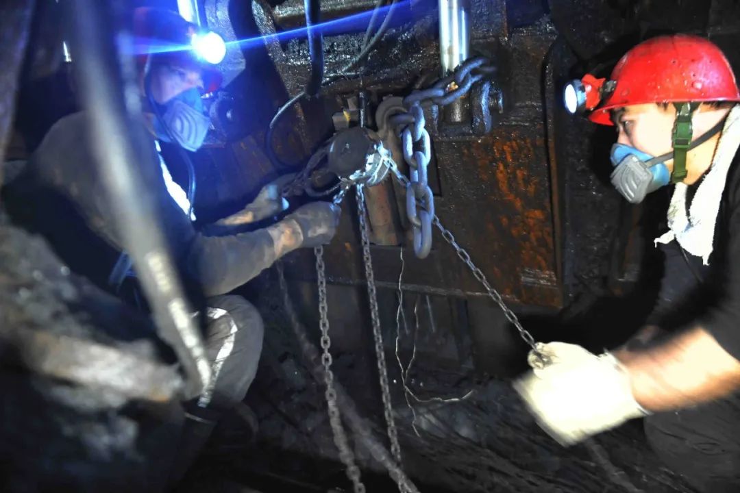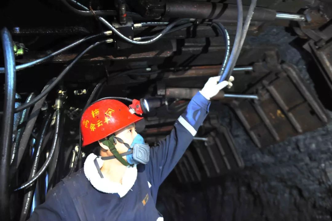 南山煤矿高等区矿工师傅们正在对采煤事人情装备举行维护