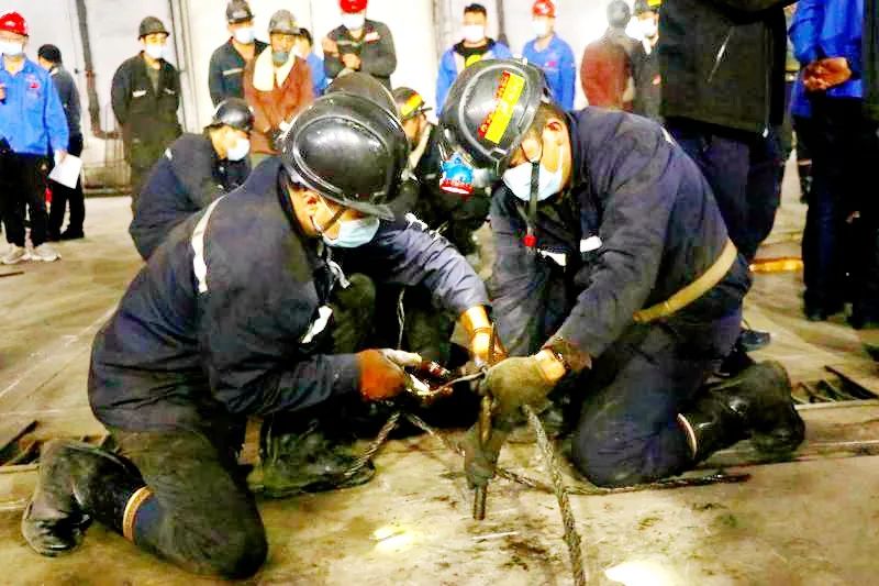 本次手艺交锋项目为φ18.5大绳编插绳扣,以现场裁判考评的方法举行。交锋现场,参赛选手们三人一组,依附娴熟的手艺,团结岗位标准及现实事情中掌握的操作要领,随着插编钎子的上下翻飞及钢丝绳头的往返插进抽出,最终展现在现场观众和评委眼前的成型绳扣形状雅观、平滑光整。裁判以编插时间、质量等作为评分依据。最终,采煤装置队、掘进准备队和运输区划分获得前三名。