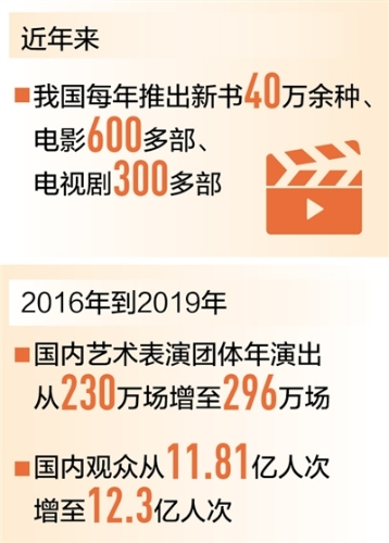 ¡¡¡¡ÔÚ×÷Æ·ÖÊÁ¿ÌáÉýµÄͬʱ£¬ÎÒ¹úÎÄ»¯²úÆ·µÄ¹©Ó¦ÄÜÁ¦Ò²ÔÚÒ»Á¬ÔöÇ¿¡£ÏÖÔÚÎÒ¹úÿÄêÍÆ³öÐÂÊé40ÍòÓàÖÖ¡¢Í¯Êé4Íò¶àÖÖ¡¢Ó°Ï·600¶à²¿¡¢µçÊÓ¾ç300¶à²¿¡¢¶¯Âþ400¶à²¿¡¡ÖÚ¶àÎÄ»¯²úÆ·µÄÉú²ú¹æÄ£Î»¾ÓÌìÏÂǰÏß¡£ÑݳöÊг¡Ò»Á¬²ýÊ¢£¬2016Äêµ½2019Ä꣬º£ÄÚÒÕÊõÑݳöÕûÌåÄêÑݽø³¡´Î´Ó230Íò³¡ÔöÌíÖÁ296Íò³¡£¬º£ÄÚ¹ÛÖÚ´Ó11.81ÒÚÈË´ÎÔöÌíÖÁ12.3ÒÚÈ˴Σ¬ÆäÖÐÅ©´å¹ÛÖÚÁè¼Ý7ÒÚÈ˴Ρ£