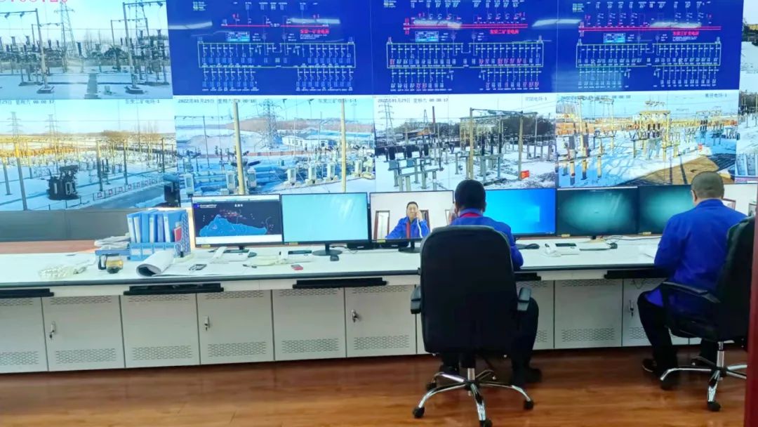 1月31日黄昏,双矿供电公司清静生产指挥中心灯火通明,只见墙上的LED显示屏上,供电变电显示界面、各变电所数据实时状态一清二楚 。