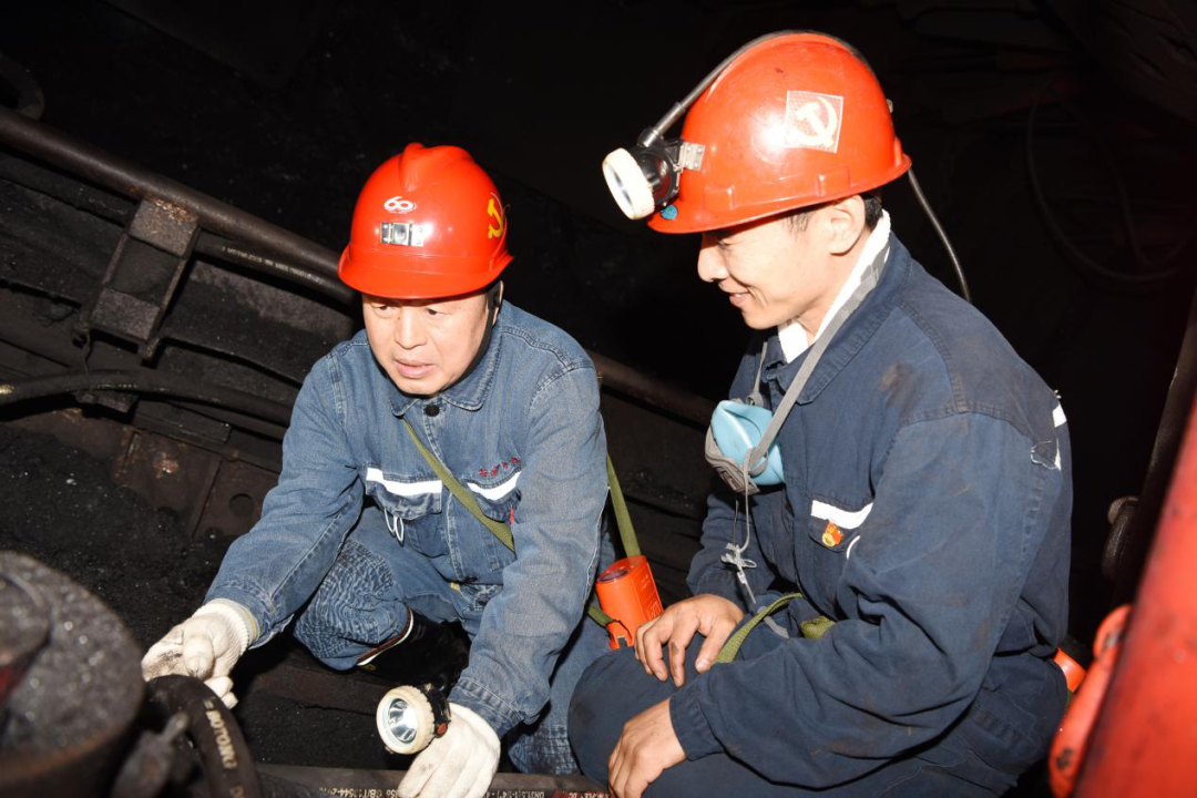 在701采煤事人情,张长山和杨会军两位省党代会代表与当班矿工围在一起,在询问职工出勤、人为收入、矿工培训等情形后,向矿工们宣讲省党代会精神,并泛论参会感受。