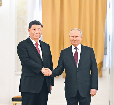 本报莫斯科3月21日电 (记者杜尚泽、曲颂)外地时间3月21日下昼,国家主席习近平在莫斯科克里姆林宫同俄罗斯总统普京举行谈判。两国元首就中俄关系及配合体贴的重大国际和地区问题举行了真挚友好、富有用果的谈判,告竣许多新的主要共识。双方一致赞成,本着睦邻友好、相助共赢原则推进各领域来往相助,深化新时代周全战略协作同伴关系。