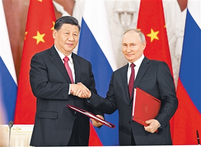 外地时间3月21日下昼,国家主席习近平在莫斯科克里姆林宫同俄罗斯总统普京举行谈判。这是谈判后,两国元首配合签署《中华人民共和国和俄罗斯联邦关于深化新时代周全战略协作同伴关系的团结声明》和《中华人民共和国主席和俄罗斯联邦总统关于2030年前中俄经济相助重点偏向生长妄想的团结声明》。