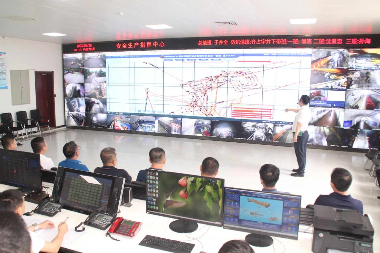 会前,与会职员寓目了东守卫矿智能化建设专题片,听取了煤矿智能化树模矿井各子系统建设情形先容,旅行了清静生产指挥中心,并通过大屏幕详细相识《煤矿综合管控平台一张图》当中生产态势、清静双控、清静监测、职员定位、视频可视化、综合自动化等应用情形。