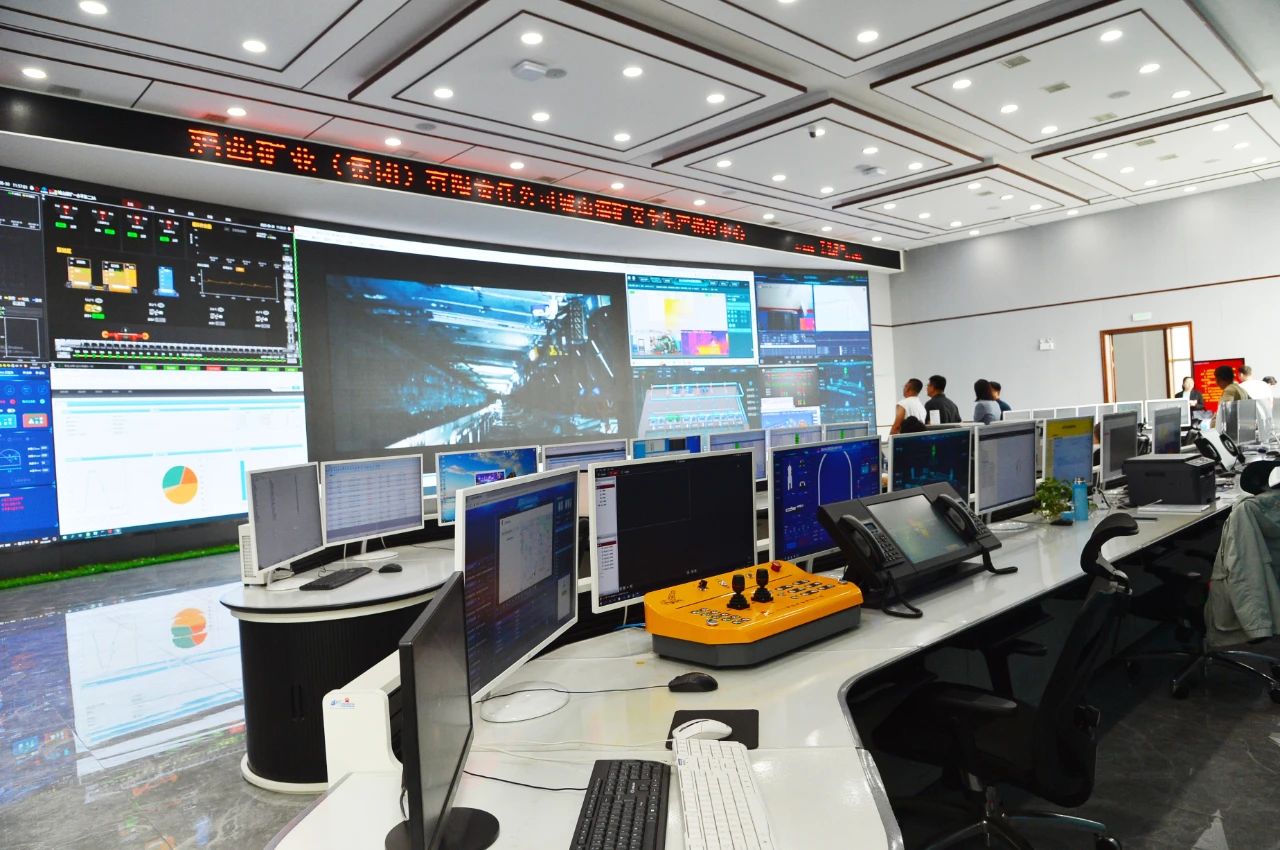 在城山煤矿智能化清静生产指挥中心,巨型电子屏幕扑面而来,让人深感震撼。巨屏详细泛起了矿山“大脑中枢”的煤矿智能综合管控平台。