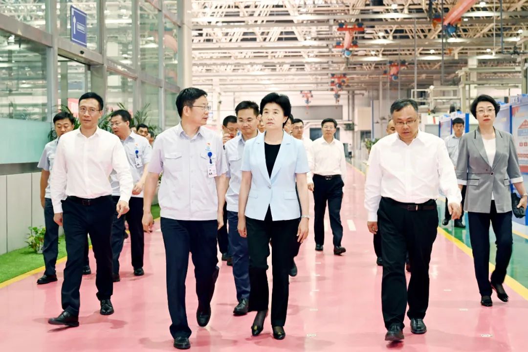 在中国航发哈尔滨东安发念头有限公司,省委副书记、省长梁惠玲观察生产线和产品,相识民用航空发念头公司组建情形。