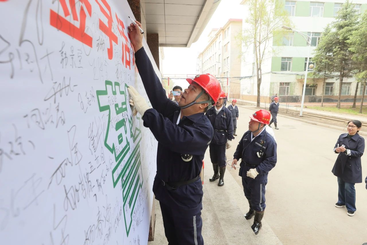 入井前,张忠波在兴安矿清静上岗签字运动主题条幅上郑重署名。