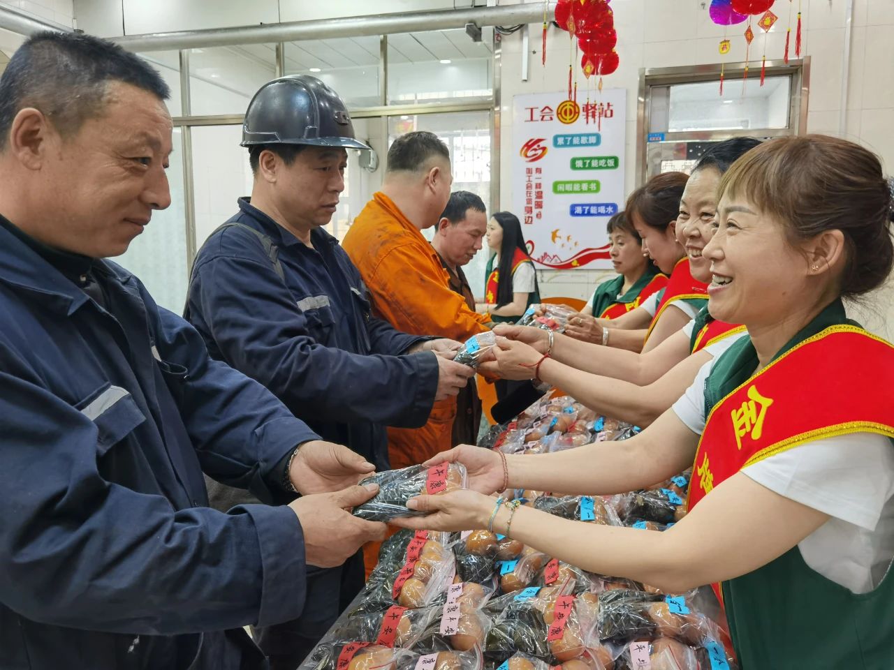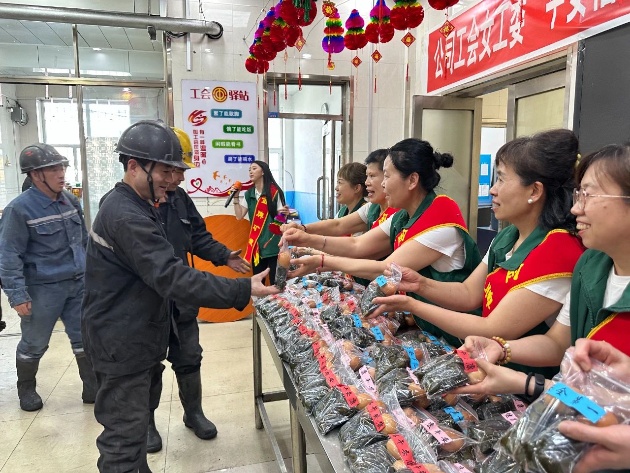 在新安矿入井走廊,现场洋溢着浓浓的节日气氛。“端午安康,吃个粽子,下井注重清静!”金牌矿嫂们一边递上粽子和鸡蛋,一边亲热地嘱咐着。职工们接过慰问品,脸上洋溢着幸福的笑容,纷纷体现,一定切记清静,为企业攻坚克难争做孝顺。